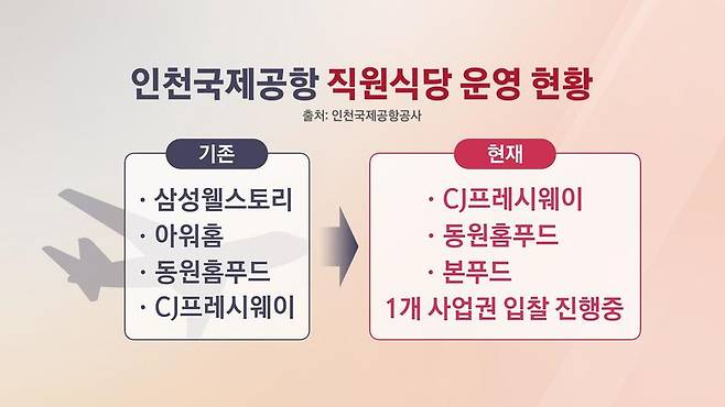 이에 대해 인천공항공사 측은 "직원식당 이용객을 정확하게 파악하기 어려운 점 등 위생법상 문제가 있어 대상을 폭넓게 할 수 있는 일반음식점으로 전환했다"고 설명했습니다.