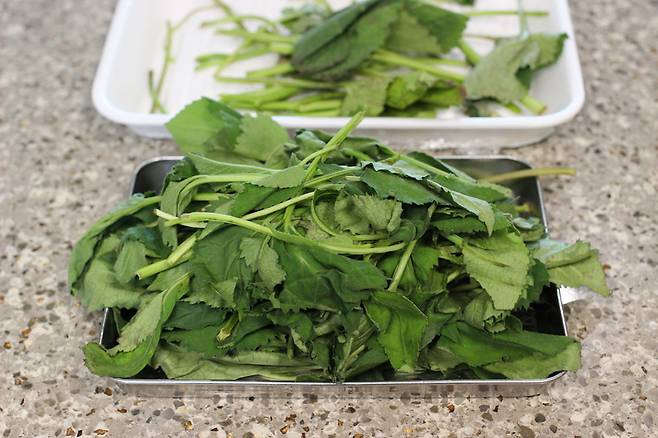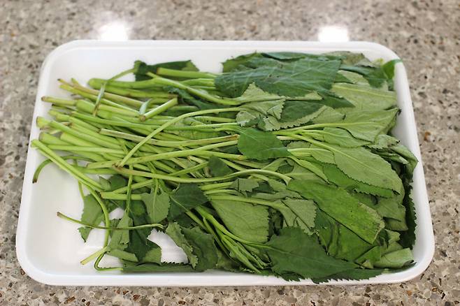 취나물 한 팩 준비했어요. 바로 데치지 않고 손질이 필요해요.