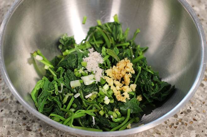 국간장 1큰술, 소금 3꼬집, 다진마늘 1/3큰술, 들기름, 깨