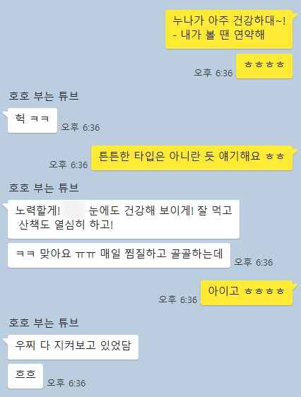 누나는 아주 건강하니 걱정하지 말라는 말에 이렇게 대답했어요.