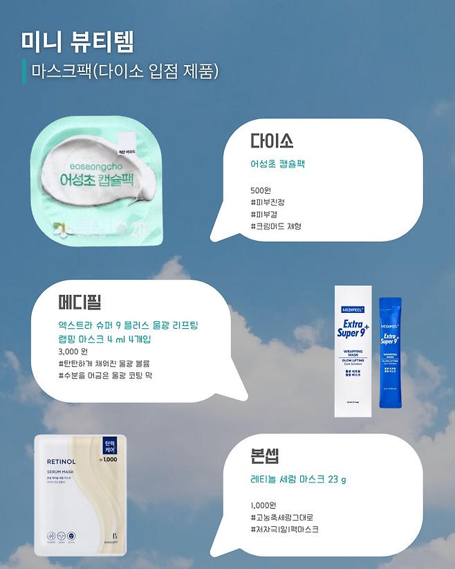 마스크팩은 가성비 갑! 다이소에