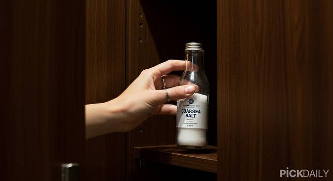 굵은 소금은 공기 중 수분을 끌어당기는 성질이 강해 습기 제거에 효과적이다. 유리병이나 종이컵에 담아 옷장 안쪽에 두면 서서히 습기를 흡수하면서 눅눅함을 줄여준다.