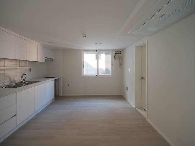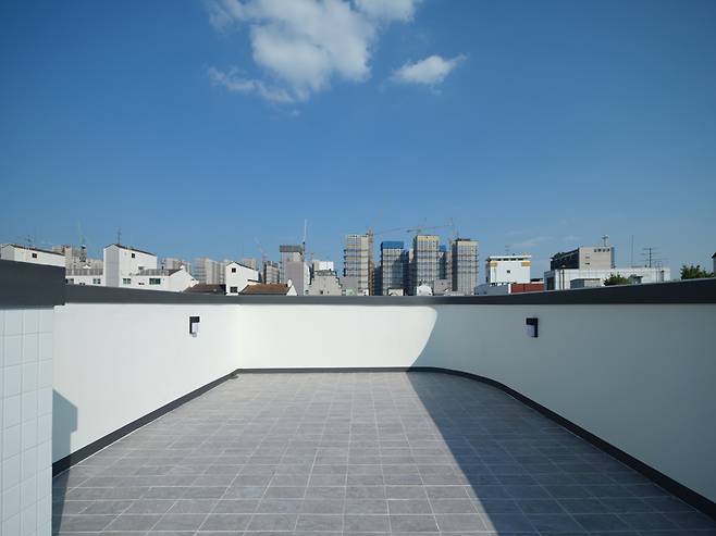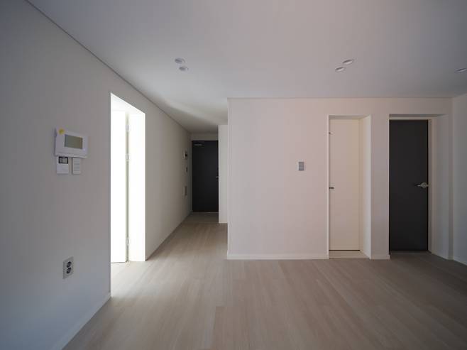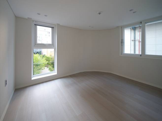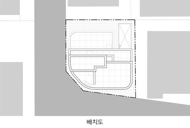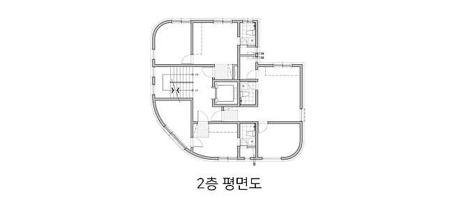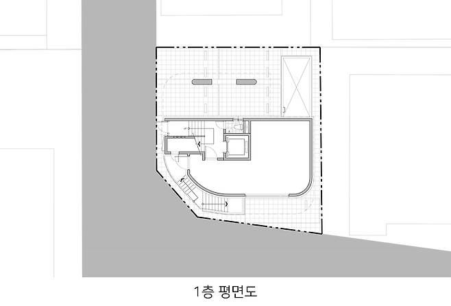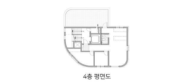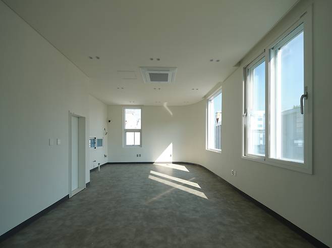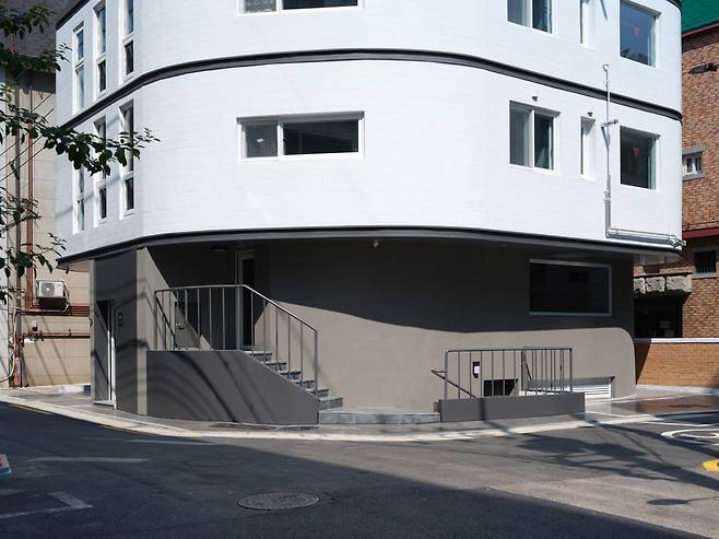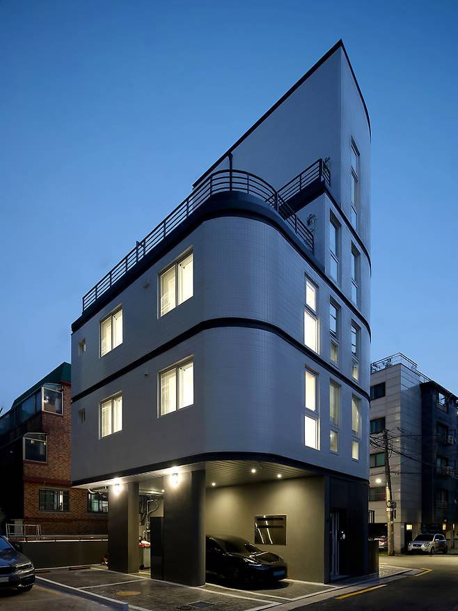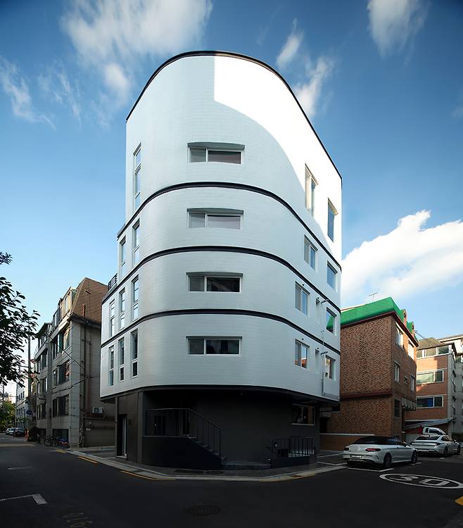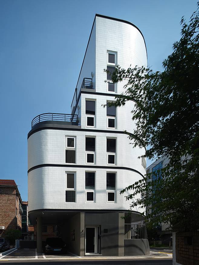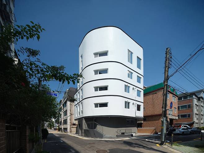 건축물이 갖는 정량적인 수치는 여러 물리적, 환경적 제약 조건을 반영하되, 적어도 사용자의 눈길, 손길, 발길이 닿는 내·외부의 표피에서 만큼은 건축물을 둘러싼 ‘도시’라는 제약 조건과 관계 맺는 방식을 드러내야 한다고 생각했한 건축가. 이목이 쏠리는 모퉁이 땅, 집은 미소를 건네며 인사하듯, 둥글고 부드러운 형태를 취해 친근함으로 외부와 관계 맺는다. 또한, 테라스를 거쳐 외부로 연장되는 확장성과 최소한의 마감으로 단정하게 구성한 공간은 집이 내부와 관계 맺는 방식이다.