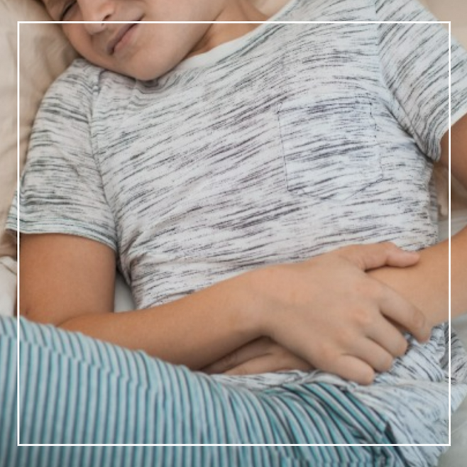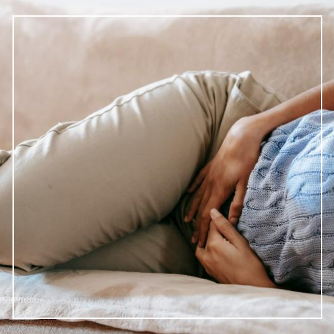통증이 심할 땐 옆으로 누워 다리를 배 쪽으로 살짝 구부린 자세가 복부 긴장을 줄여주고, 통증도 줄이는 데 도움이 됩니다.