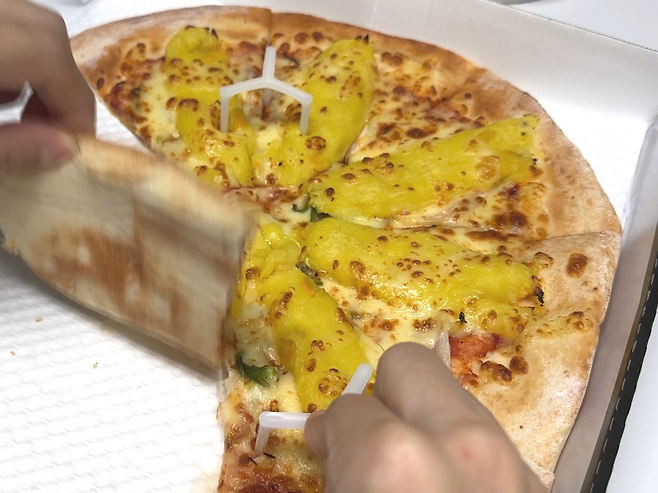피자를 먹다 보면 뜯기 위해서 옆에 피자를 잡아서 같이 뜯어야 하잖아요