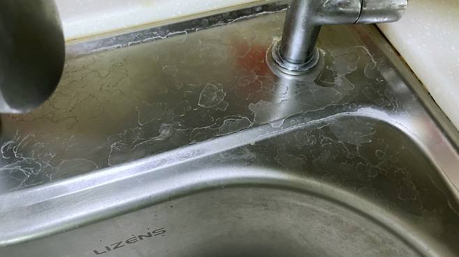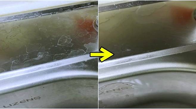 매번 물이 닿는 싱크대는 희끗한 물얼룩이 생기기 쉬운데요.