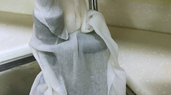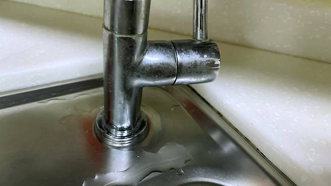 처음과 마찬가지로 물티슈에 식초를 적셔 수전에 감아두세요