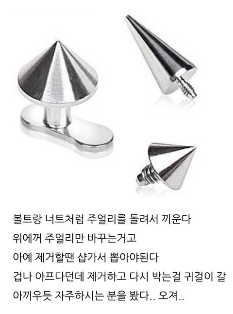 너트를 피부 밑에 아예 넣는 피어싱 이래.