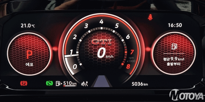 연비도 나쁘지 않은 수준이다. 폭스바겐 골프 GTI의 공인연비는 도심 10.1km/l, 고속도로 13.9km/l, 복합 11.5km/l로 크게 떨어지지 않는 수준이다. 시승을 진행하며 기록한 구간별 평균 연비 또한 공인 연비에서 크게 벗어나지 않는다. 연료는 옥탄가 95RON 이상의 고급 휘발유를 사용할 것을 권장한다.