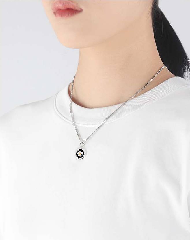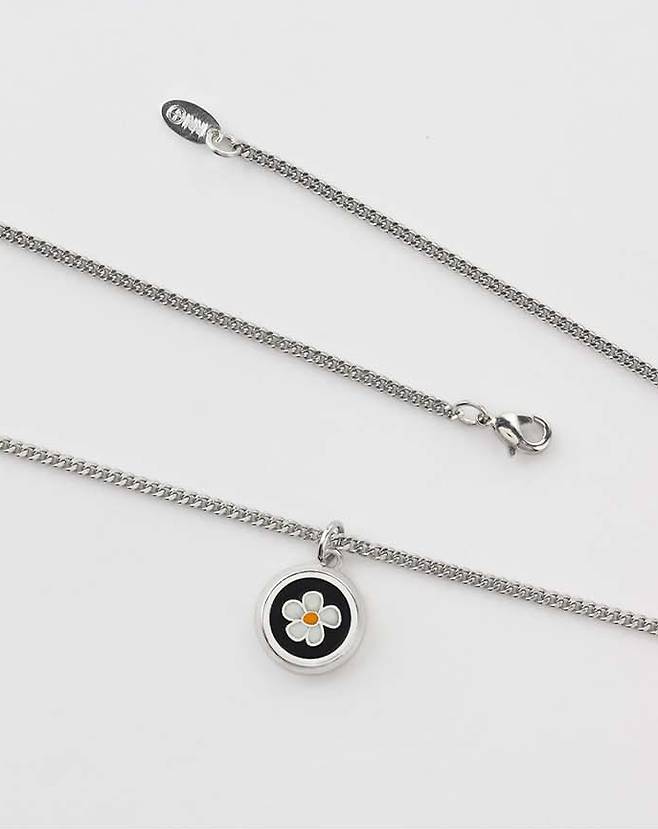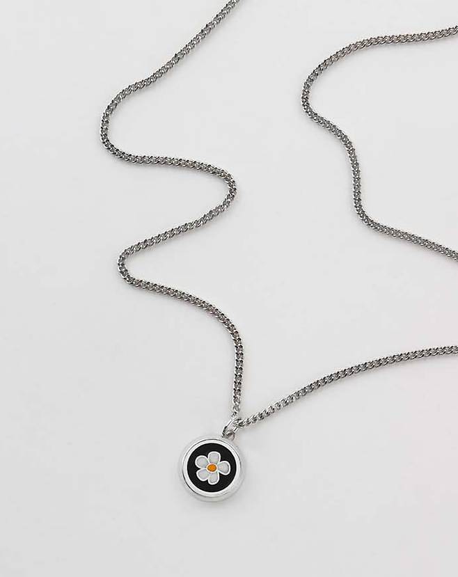 실버 체인과 원형 플라워 블랙 팬던트가 포인트입니다.