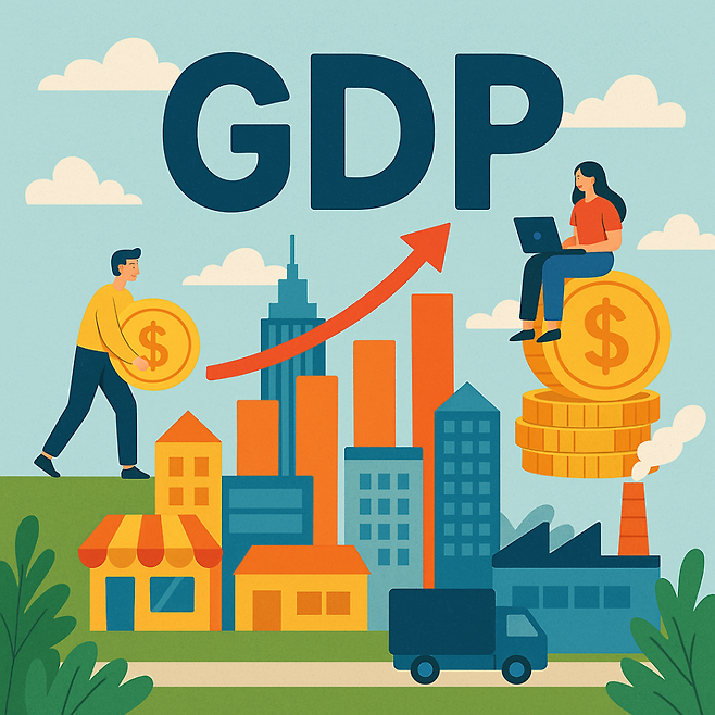 GDP는 국내총생산을 의미합니다. 한 나라의 국경 안에서 생산된 모든 재화와 서비스의 가치를 합산한 것입니다.