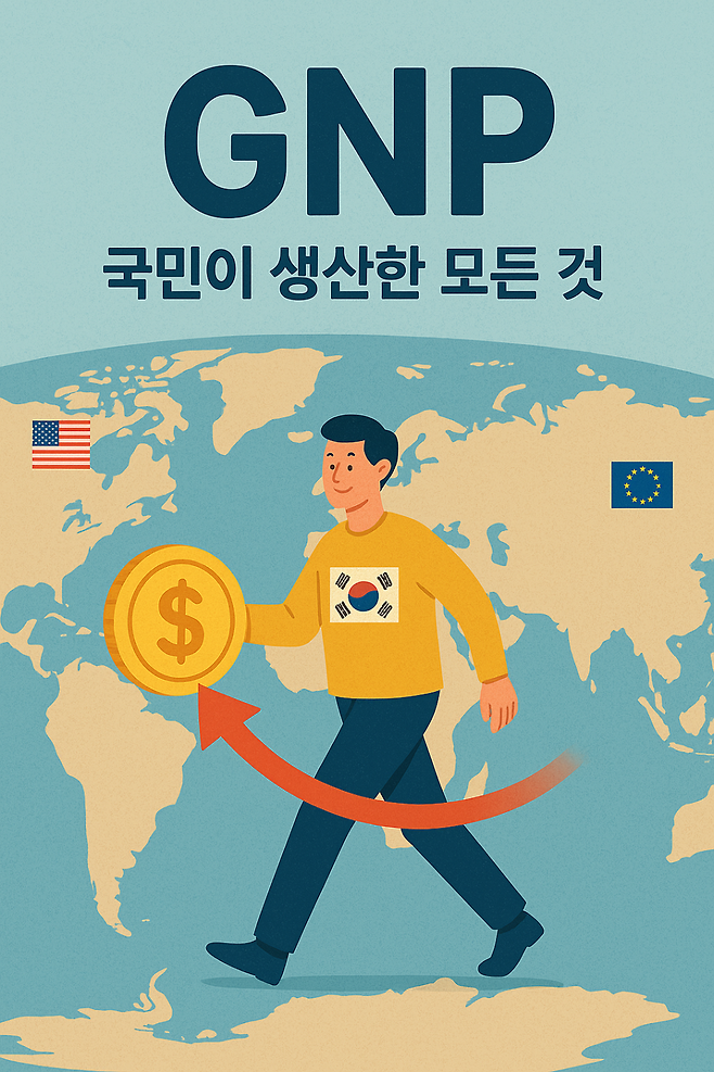 GNP는 국민총생산을 의미합니다. 한 나라의 국민이 국내외에서 생산한 모든 재화와 서비스의 가치를 합산한 것입니다.