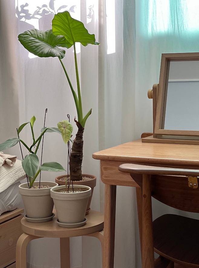 '공간이 가구와 소품 등으로 가득 찼는데 무언가 부족한 느낌이 든다' 싶으면 그건 바로 식물이 채워줄 수 있어요. 식물의 초록색은 신기하게도 어떤 컬러나 소재들이랑도 잘 어우러지는 것 같아요.
