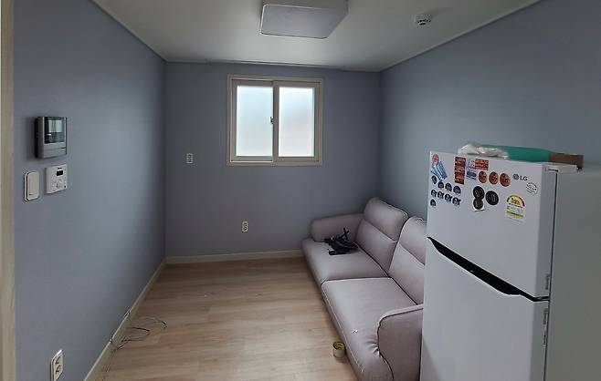 저는 집에 들어가면 제일 먼저 TV를 켜서 집 전체에 소리를 채우는 습관이 있는데요. 꼭 보고 있지 않더라도 뉴스, 예능, 음악 소리가 들려야 마음이 편해져요. 그래서 TV를 포기할 수 없었고, TV 짝꿍은 소파라며 원룸에선 꿈도 못 꾸던 3인용 소파를 과감히 들였어요. 소파는 '레이디가구의 다인애쉬 소파'라는 제품인데 총 180cm라서 키가 166cm인 제가 눕기에 딱이더라고요.