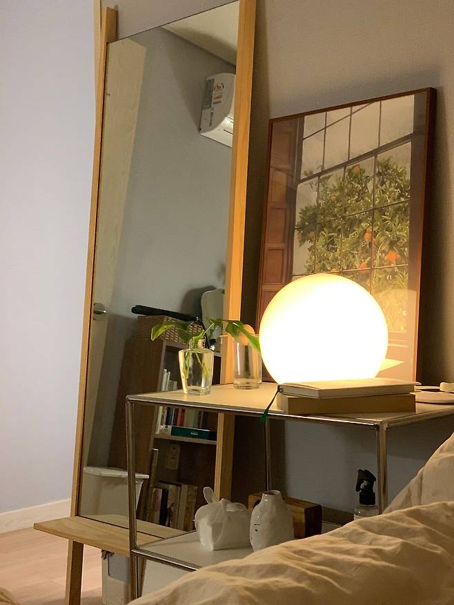 마지막으로 조명은 정말 공간의 완성입니다. 저는 집에서 방 등을 거의 켜지 않고 생활하는데요. 귀가하자마자 가장 먼저 따뜻한 빛을 내는 테이블 램프와 간접조명들을 켜는 것이 제 루틴이랍니다. 쨍한 흰빛의 천장 형광등으로는 낼 수 없는 집의 분위기를 이 조명들이 책임져주고 있어요.