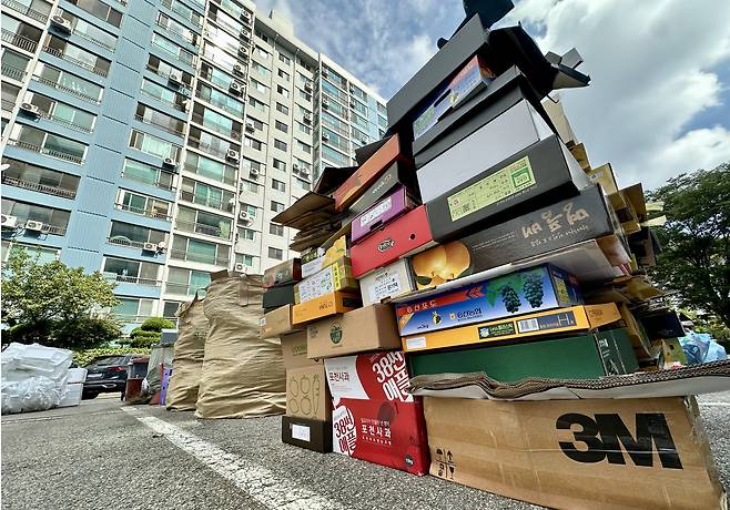 | ▲ 추석 연휴 마지막 날인 지난 9월 18일 서울 시내의 한 아파트 단지에서 재활용 쓰레기가 쌓여있다. |