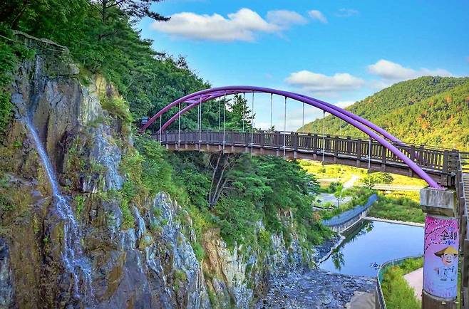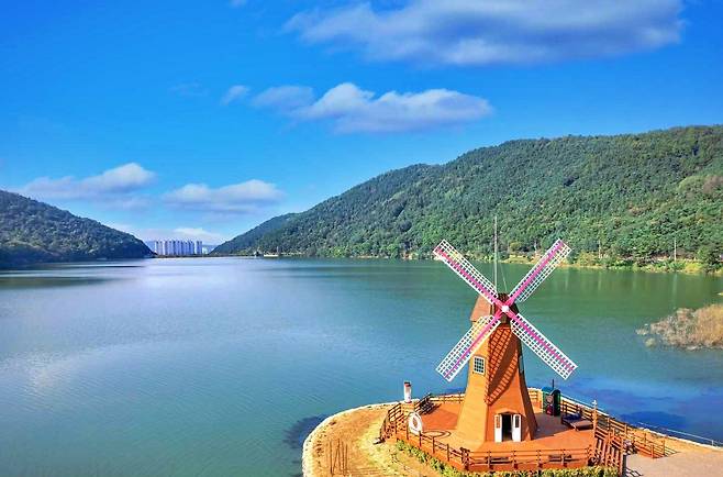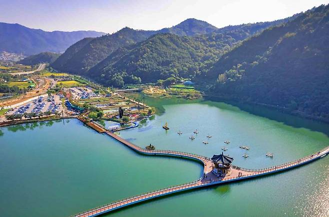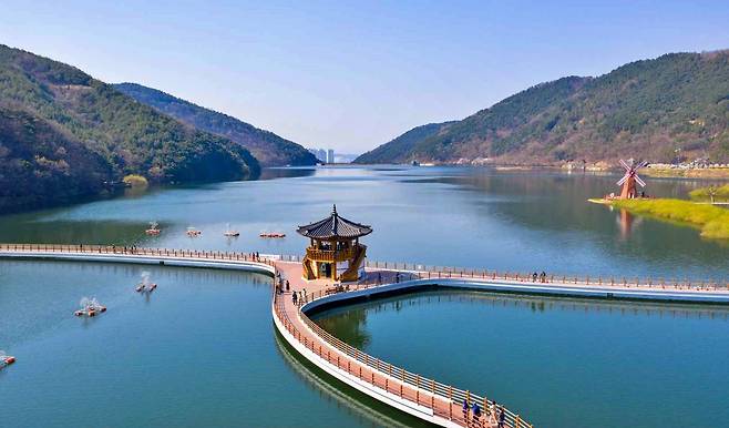 산책로 곳곳에는 바람개비 쉼터, 백년수중다리, 금동굴, 전망대 등 다양한 포토존과 체험 공간이 마련되어 있다. 특히 가을이면 단풍과 억새가 물든 호수 풍경이 한 폭의 풍경화를 완성한다.