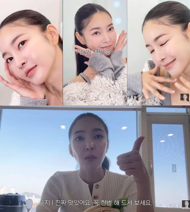따뜻한 차로 건강관리까지 한 김윤지는 "정말 완벽하다. 3개는 먹을 수 있다"라 자부했다.