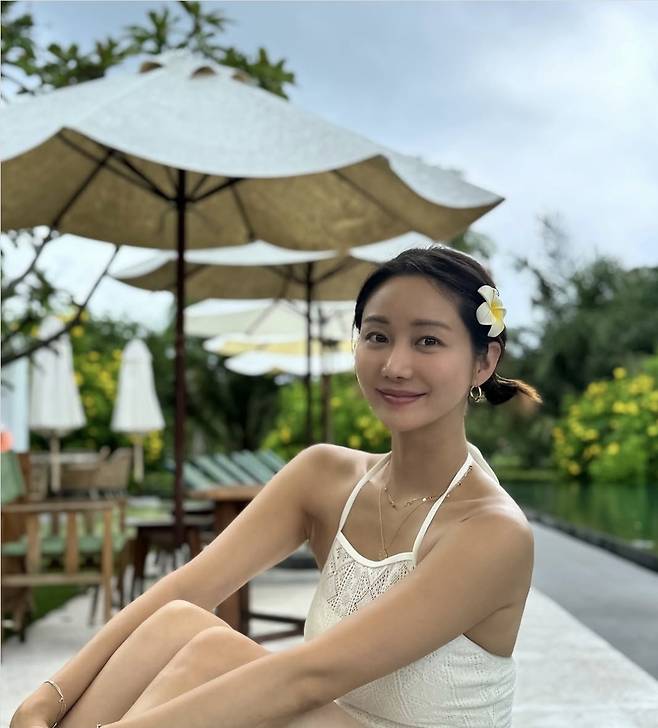 머리에는 화이트 플라워를 포인트로 더해 휴양지 감성을 한껏 살렸고, 내추럴 메이크업과 맨발 스타일링으로 청순하면서도 치명적인 분위기를 연출했습니다.