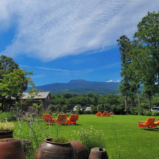 5.16 숲터널을 지나 나오는 서귀포 카페 모레기동타잔은 삼나무가 둘러싼 공간에서 원 없이 한라산을 바라볼 수 있는 뷰까지 지녔다. 독특하게도 제주에서만 볼 수 있는 이색 지형인 화산석 연못 바로 앞에 의자를 설치해두어 자연을 훼손하지 않은 점도 유익하다. 넓은 평야에 띄엄띄엄 위치한 좌석으로 한적하게 즐길 수 있는 것이 특징. 모레기동타잔은 노키즈 ,노펫존이니 참고 할 것.