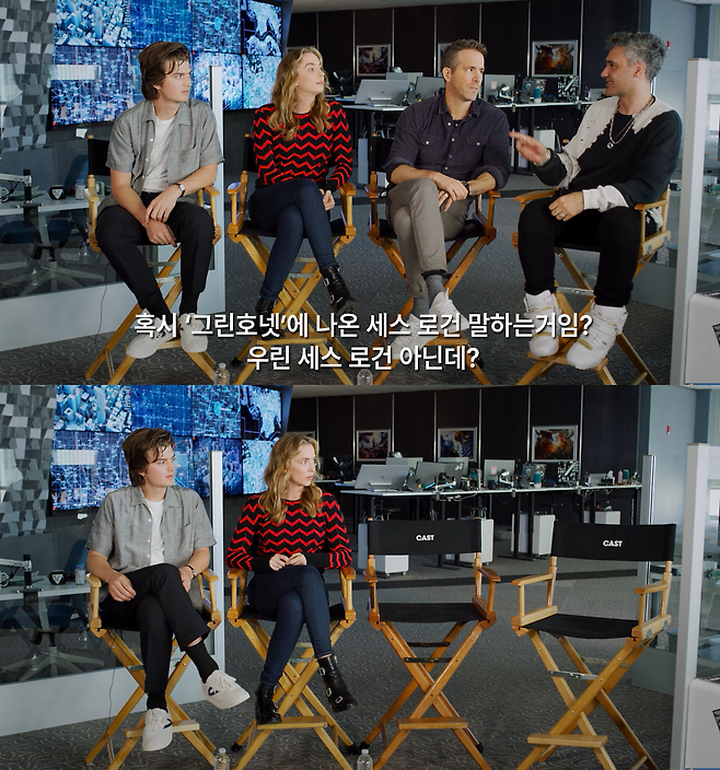 하지만 끝내 이 두 배우의 입에서 나오면 안 될 희대의 망작 '그린랜턴'이 나오자, 애써 침착함을 유지하며 '그린호넷'의 세스 로건을 언급한 레이놀즈와 와이티티. 끝까지 자신들이 세스 로건은 아니라며 부정하다 이내 순식간에 사라져 웃음을 자아냈다.