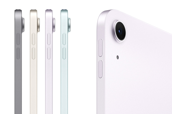 새로운 아이패드 에어는 스타라이트, 스페이스 그레이와 함께 새로운 블루, 퍼플 마감으로 출시된다. 견고한 디자인에 100% 재활용 알루미늄 인클로저를 사용했다. 최소 저장공간 크기도 2배 증가하여 이제 128GB부터 시작하며 512GB와 1TB 모델도 추가됐다.