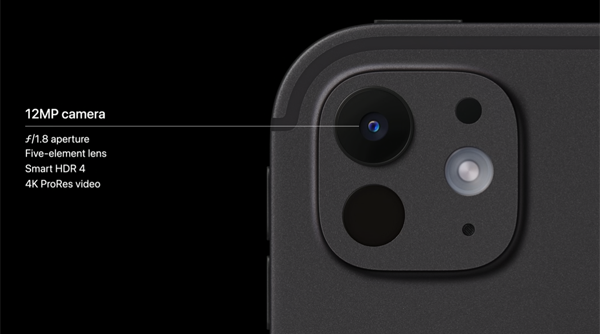 아이패드 프로의 카메라는 촬영, 편집, 공유를 하나의 기기로 할 수 있다. 파이널 컷 프로에서 프로젝트를 생성할 때 4K ProRes 영상을 후면 1,200만 화소 카메라로 촬영하면서 스튜디오급 내장 마이크 4개로 풍부한 오디오를 녹음할 수 있다.