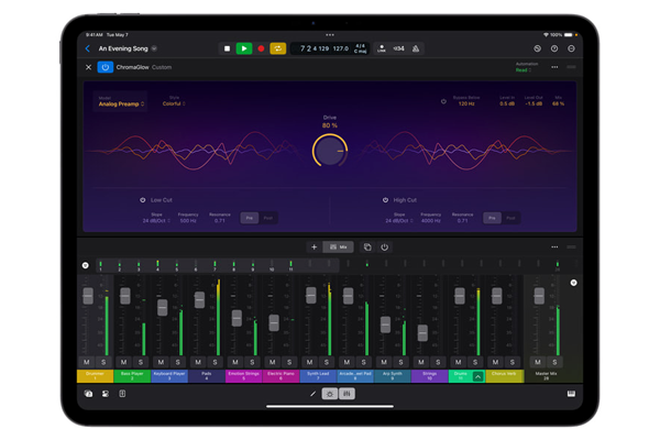 음향 공간감을 미려하게 연출하는 플러그인 ChromaVerb는 현재 프로듀서들이 하드웨어로 디지털에 아날로그 감성을 입히는데 이제 그 모든 하드웨어 기능을 ChromaGlow라는 새로운 플러그인을 통해 로직 프로 안에 담았다. 머신 러닝을 통해 놀라운 디테일로 해당 소리를 모델링하였으며 M4의 파워로 아이패드 프로에서 마치 레코딩 스튜디오처럼 이를 다양한 트랙에 이용할 수 있다.