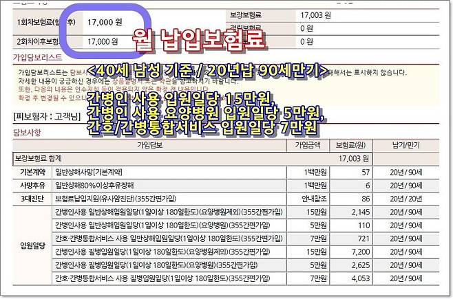 여성분들은 보험료가 좀 높기 때문에 이 부분은 참고해주시기 바랍니다.