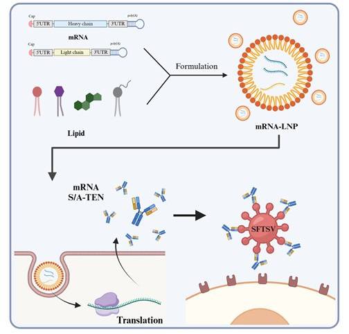 남재환 교수 연구팀은 SFTS 바이러스의 ‘표면 단백질(Gn)’을 인식하는 인간 단일클론항체를 mRNA 형태로 합성한 다음, 이를 지질나노입자(LNP)로 전달해 생체 내에서 항체가 생성되도록 설계했다.