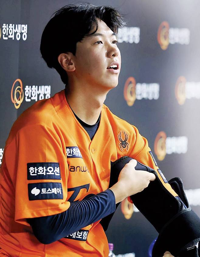 선발진 막내로서의 고충을 물으니 의외의 대답이 돌아왔다. ‘영어’였다. 황준서는 “네 명이 영어로 대화하는데 제가 영어를 못해서 끼기가 어렵다”라며 멋쩍게 웃었다. 메이저리거 출신 류현진은 물론 문동주도 영어 회화에 능통하다. 황준서는 “저만 영어를 못해서 맨날 통역 형한테 붙어 있는다”라며 “영어 공부를 하고 싶은데 시간이 없다”라고 말했다.