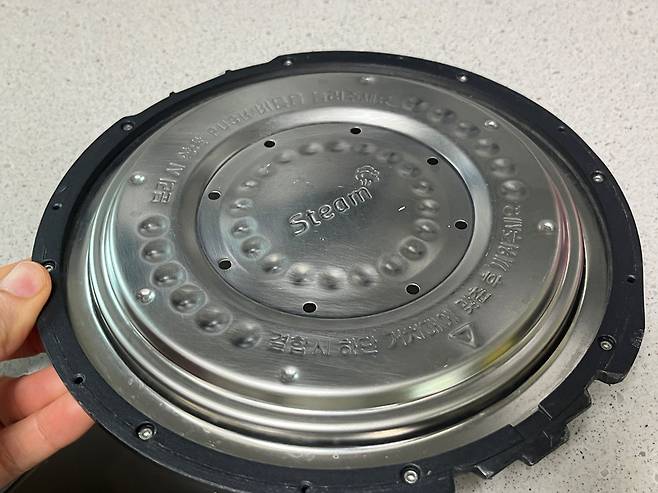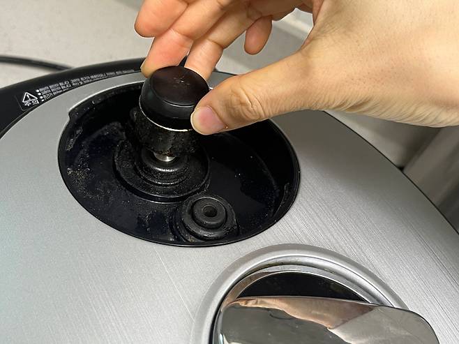 가장 먼저 확인해 볼 부분은 "밥솥추"입니다. 밥솥 추는 밥솥 내부가 일정한 압력이 유지되도록 해주는 역할을 합니다. 밥솥추를 분리해서 가끔씩 청소해야 밥솥추가 제대로 작동합니다.