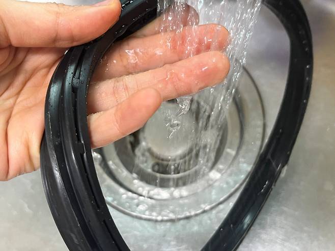 만일 고무패킹이 오염된 경우에도 김이 새고, 냄새가 날 수 있습니다. 고무 패킹은 밥솥 사용 후 분리하여 물로 세척해 주세요.