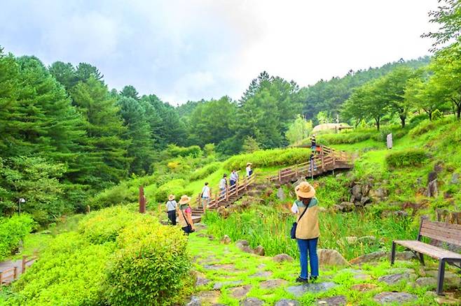네 번째 코스인 충남 금산 구간에서는 깎아지른 듯한 적벽의 웅장한 절경을 감상할 수 있으며, 다섯 번째 코스에서는 천년고찰 영국사로 이어지는 숲길을 걸을 수 있습니다.