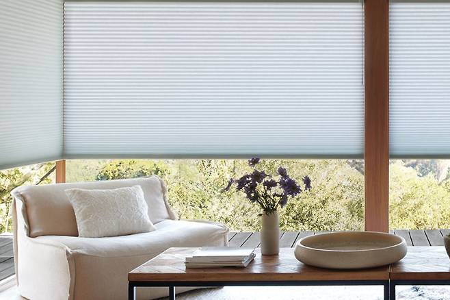 이름에서 알 수 있듯이 옆에서 보면 벌집모양의 구조로 되어 있는 블라인드예요. 원단을 특수 가공해, 주름식으로 올리고 내리는 한지같은 느낌을 주는데요. 원형, 아치형, 육각형 등 일반 블라인드를 설치하기 힘든 창에도 설치가 가능해 허니콤 블라인드를 찾는 분들이 많습니다. 색상도 다양해서 인테리어에 맞게 다양한 분위기를 연출할 수 있어요.