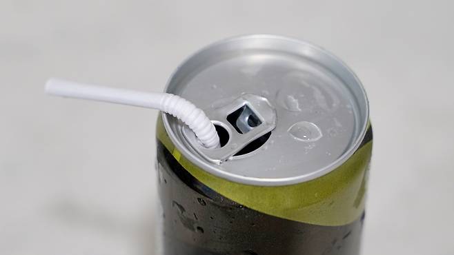그리고 구멍 안에 빨대를 쏙 꽂아 주세요. 그러면 더 이상 음료수를 마실 때 빨대가 흔들리지 않고 딱 고정이 되어 있는 것을 보실 수 있을 거예요.