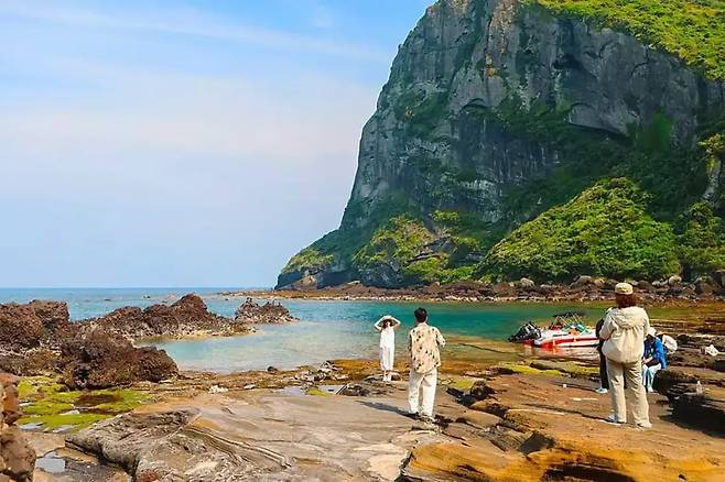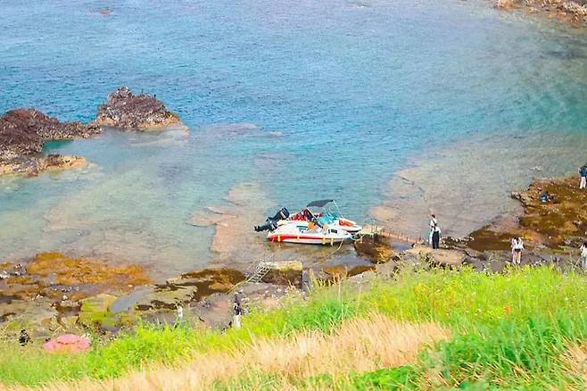 조용한 해안 산책도 좋지만, 이곳에서는 색다른 경험이 기다리고 있어요. 바로 우뭇개해안 보트 투어입니다. 해안 가까이에 마련된 선착장에서 출발하는 이 보트는 성산일출봉의 반쪽을 돌아보는 A코스와, 전체를 일주하는 B코스로 나뉩니다.