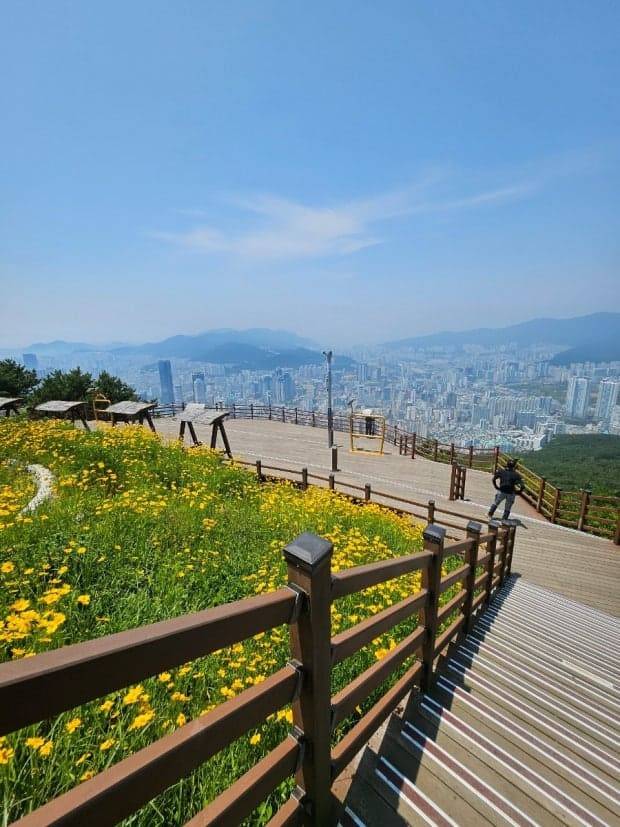 정상에 오르면 동쪽으로는 광안대교와 해운대 마린시티의 화려한 스카이라인이, 서쪽으로는 서면의 빌딩 숲과 부산항대교의 웅장한 모습이 파노라마처럼 펼쳐지는데요. 맑은 날에는 멀리 대마도까지 보일 정도라고 합니다.