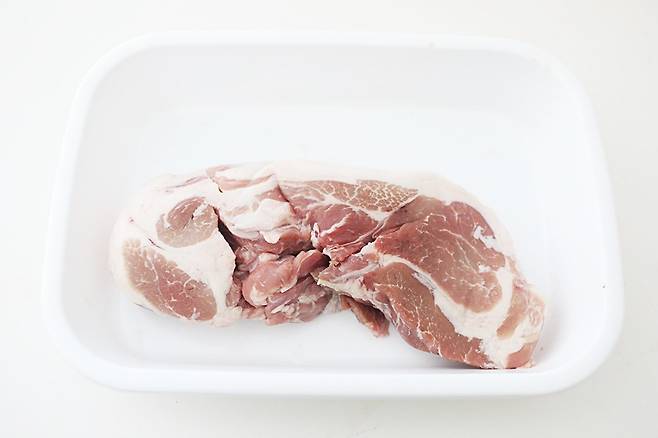 저는 이번에 무수분 수육으로 앞다리살을 사용했는데요