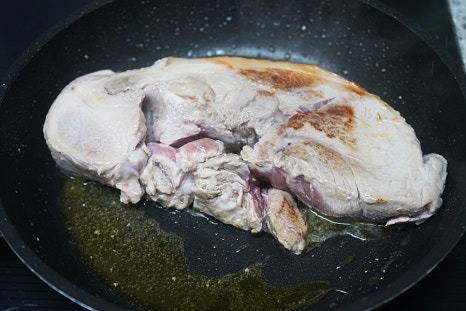 수육으로 냄비에 바로 삶아도 좋지만 한번 팬에 앞뒤로 구워줬어요