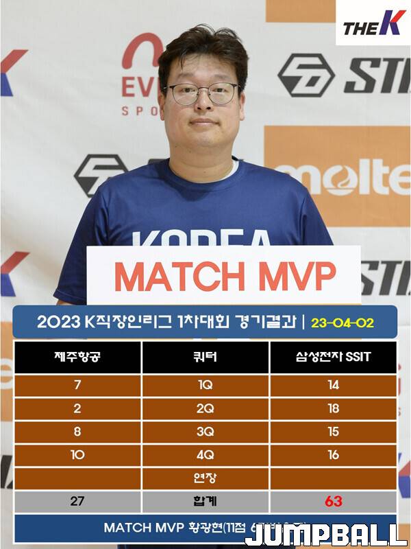 한편, 이 경기 EVISU SOPRTS(https://www.evisusports.com/) MATCH MVP에는 11점 6리바운드를 기록하며 골밑을 든든히 지켜낸 삼성전자 SSIT 뉴페이스 황광현이 선정되었다. 그는 ”7년여만에 나왔는데, 오랜만이어서 그런지 재미있었고, 감회가 새로웠다“며 ”대회라는 것이 내가 나서서 도움이 되어야 하는데 그러지 못할까 봐 부담되더라. 다행스럽게도 오늘은 팀이 승리하는 데 있어 도움이 된 것 같아서 만족했다“고 7년여만의 복귀전에 만족을 표했다.