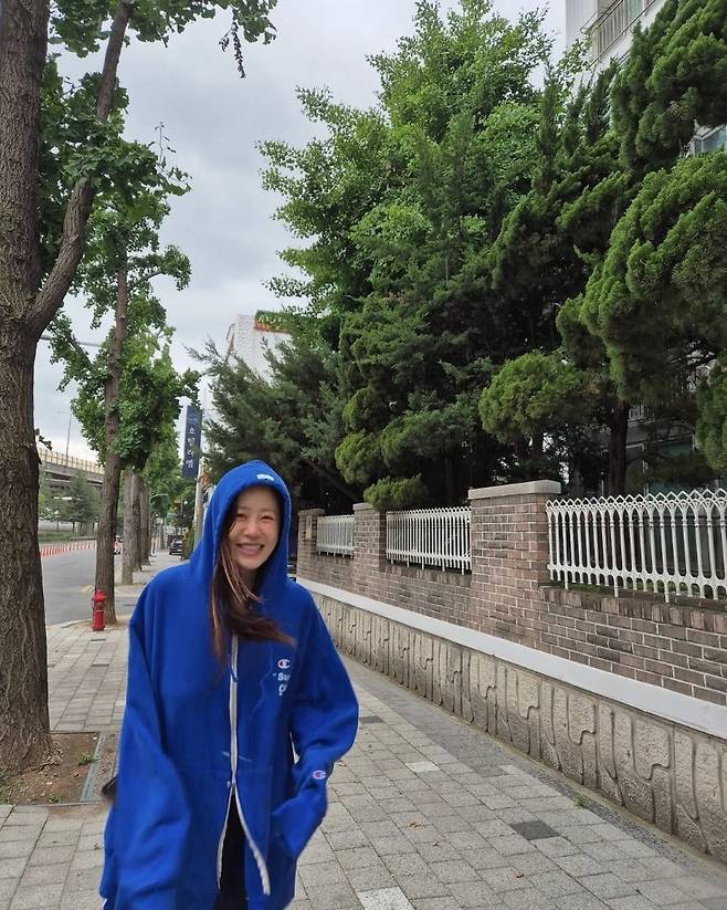 데일리 아이템인 운동화와 하운즈투스백으로 포인트를 준 센스도 돋보였습니다.