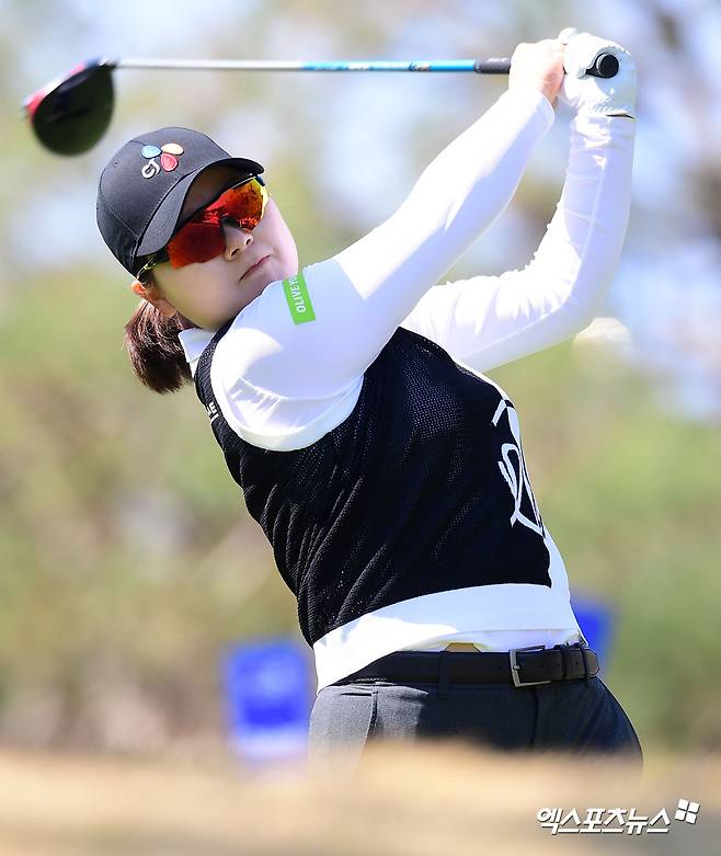(엑스포츠뉴스 부산, 김한준 기자) 6일 부산 금정구 동래베네스트골프클럽(파72ㅣ6,578야드)에서 열린 '두산건설 We've 챔피언십'(우승상금 12억 원, 우승상금 2억 1600만 원) 최종라운드 경기, 홍정민이 1번홀 티샷을 날리고 있다.