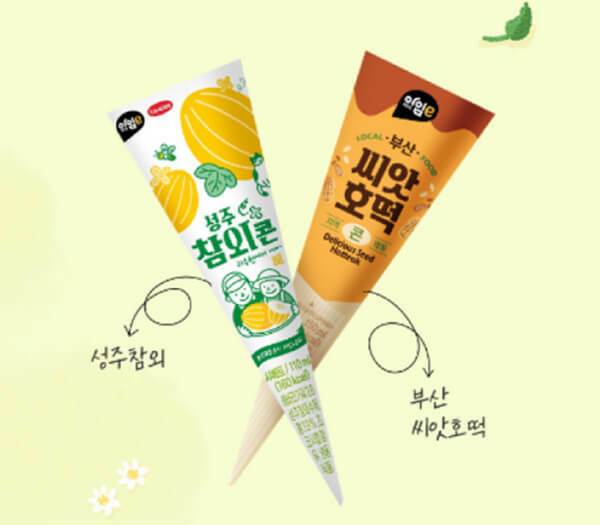 이마트24는 전국적으로 인지도가 높은 로컬 푸드를 누구나 즐길 수 있도록, 지역 특산물 아이스크림을 출시하고 있다. ‘아임e 성주참외콘’은 성주 참외 과육이 담긴 아이스크림 속에 해바라기씨를 넣어, 참외와 흡사한 비주얼을 구현한 제품이다. 비주얼은 물론 성주 참외 수제청을 가미해, 상큼하면서도 색다른 청량감을 선사할 것이다. 이마트24 편의점에서 개당 2천 원에 판매 중이다.
