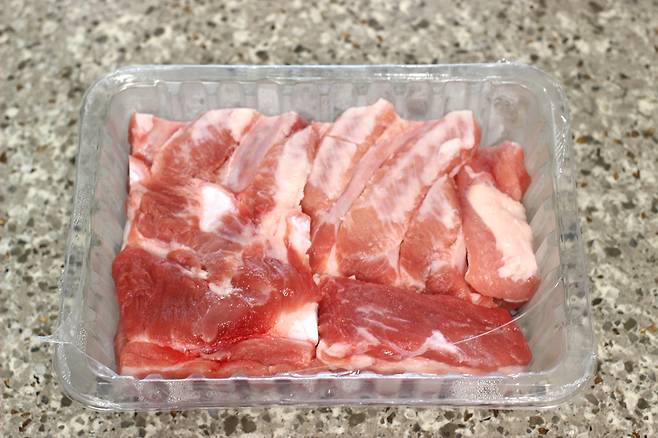 통삼겹살 1kg 준비했어요. 보통 4인 식구에 1kg 정도면 넉넉한 양이에요.