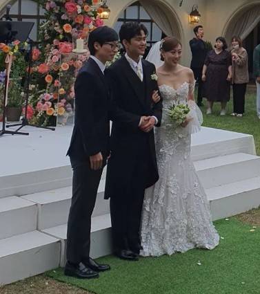 결혼식에 참석한 하객들을 통해 공개된 사진, 영상에는 ‘유퀴즈온더블럭’에서 사회를 약속한 유재석이 마이크를 잡았고, 주례는 이홍렬이 맡았다. 축가로는 엑소 수호가 나섰으며, 조혜련도 마이크를 잡고 분위기를 띄웠다. 또한 댄서 가비 등이 축하 공연을 펼치며 흥겨운 결혼식을 완성했다.