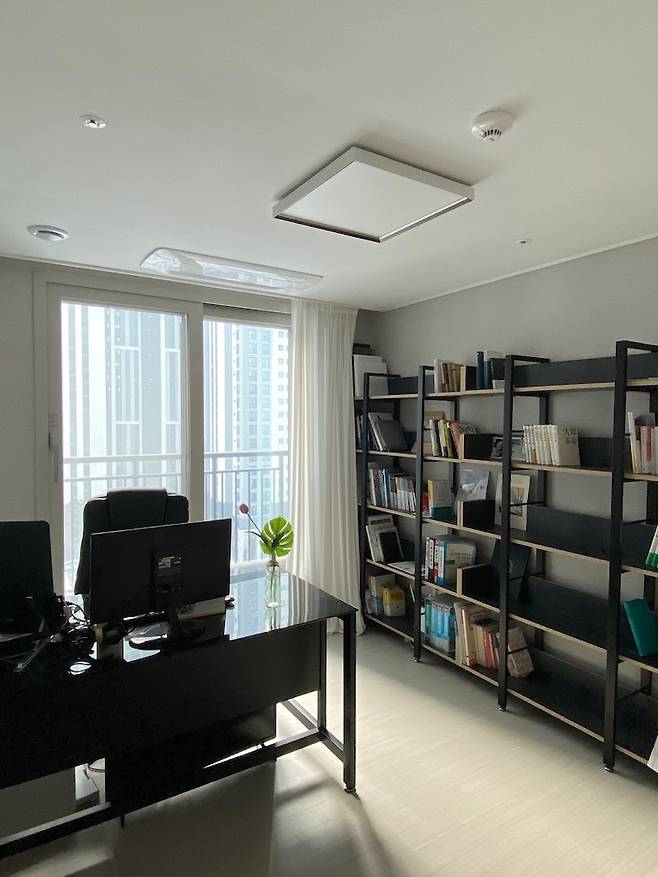 여기는 서재인데요, 제가 원하던 스타일은 아니고요, 남편의 취향이 담긴 공간이에요. 다른 공간은 모두 제가 원하는 대로 하는 대신 이 공간만큼은 남편이 하고 싶은 대로 하기로 했거든요.