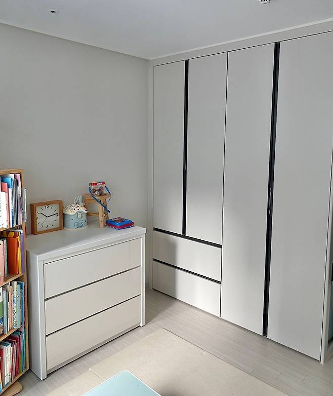 붙박이장이 있어서 옷과 이불을 넣어 사용하고 있어요.