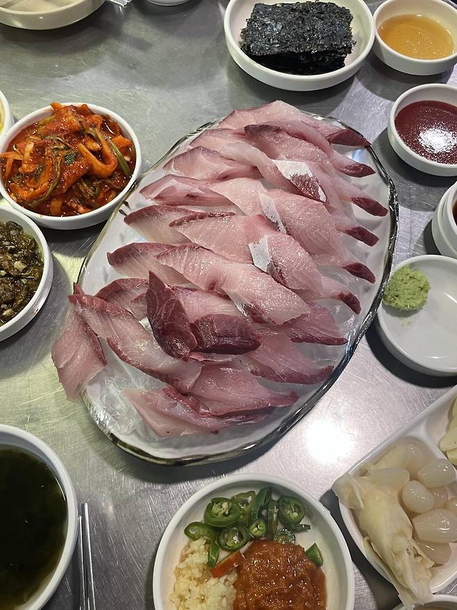 새마을전통시장 골목 끝자락에 있는 횟집이야. 밑반찬이 엄청 다양하게 나오지는 않지만, 맛있는 생선구이가 기본 찬으로 나오고 핵심인 회가 맛있는 곳이지. 가격, 신선함, 맛을 모두 고려해도 이 동네 횟집 중 일등이라고 자신 있게 말할 수 있어. 나주왕대포는 특히 대방어회 맛집으로도 유명하니 방어철에 방문해보길 바라. 늘 사람들로 바글바글한 곳이지만, 이 시즌엔 더더욱 일찍부터 만석이 되니 늦지 않게 자리 잡기!