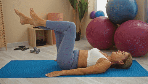 매트에 등을 대고 누운 상태에서 두 다리를 공중으로 들어 올립니다. 왼쪽 무릎을 가슴 쪽으로 당겼다가 곧게 뻗으면서, 동시에 오른쪽 무릎을 당겨줍니다. 다리는 공중에 띄운 채 번갈아 당기고 뻗는 동작을 교차로 반복합니다.